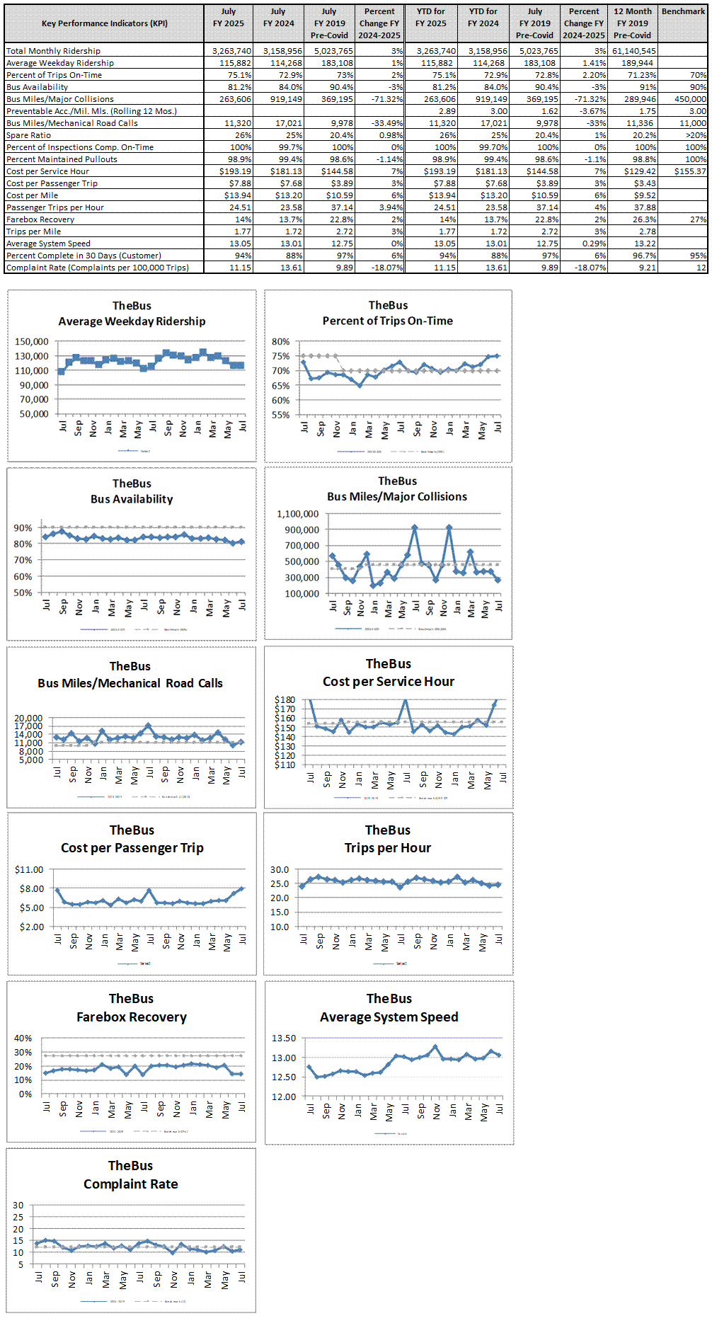 Fiscal year-to-date ridership is 3,263,740, up by 3% from the previous year.