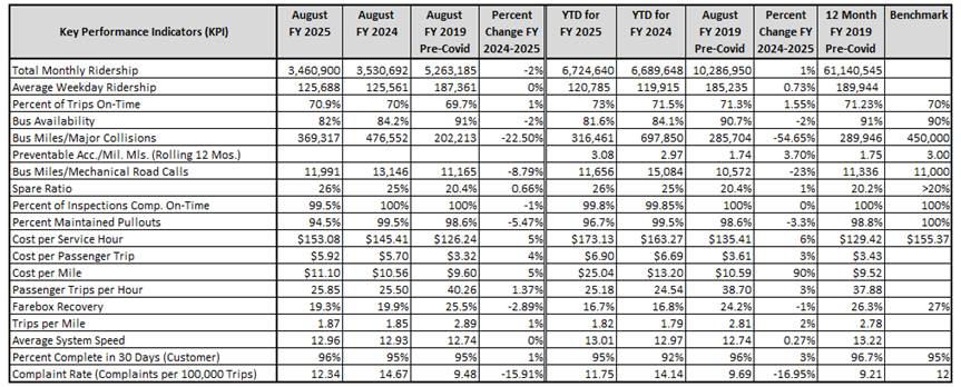 Fiscal year-to-date ridership is 6,724,640, an increase of 1% from the previous