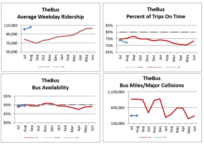 remained high at 12,720 miles for August and bus availability was 90%.