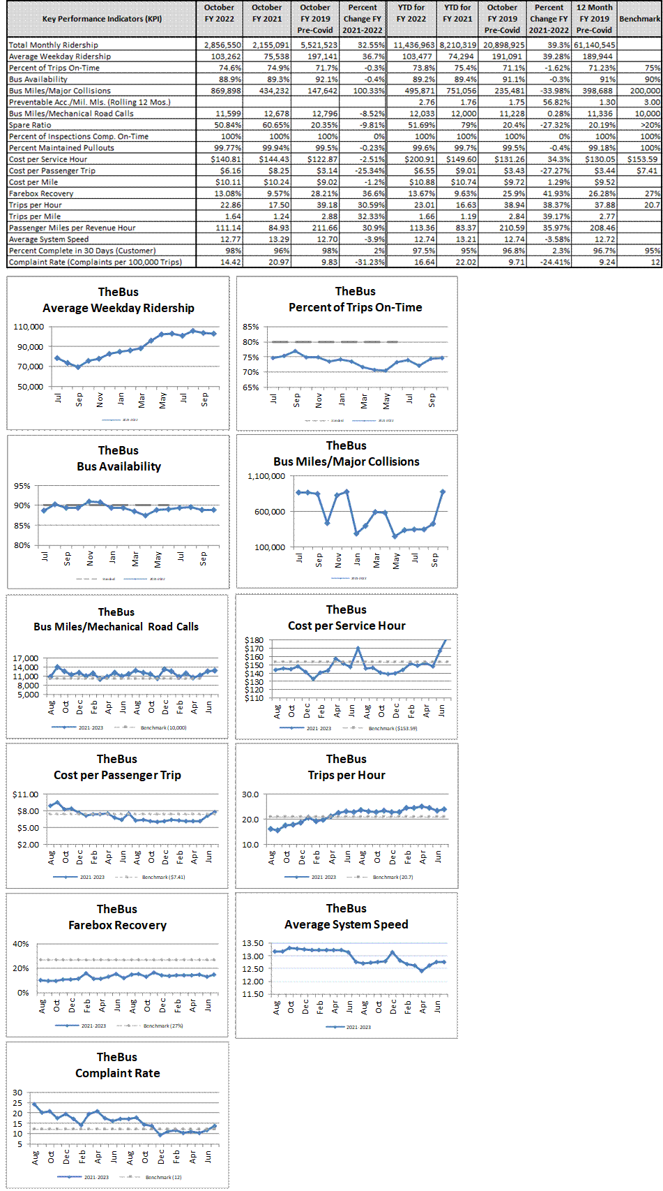 on-time performance at 80% and two (2) routes performed under 50%.